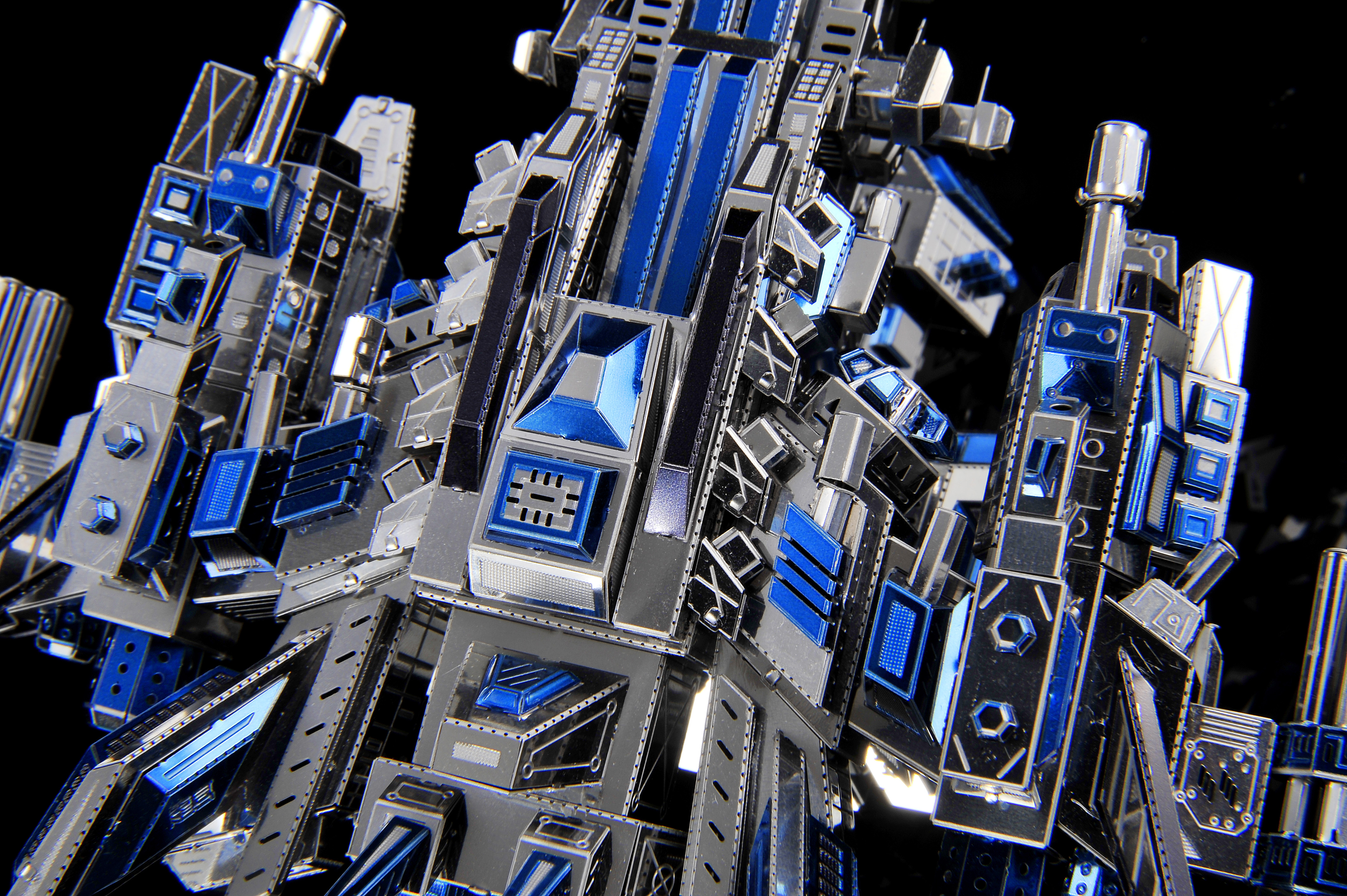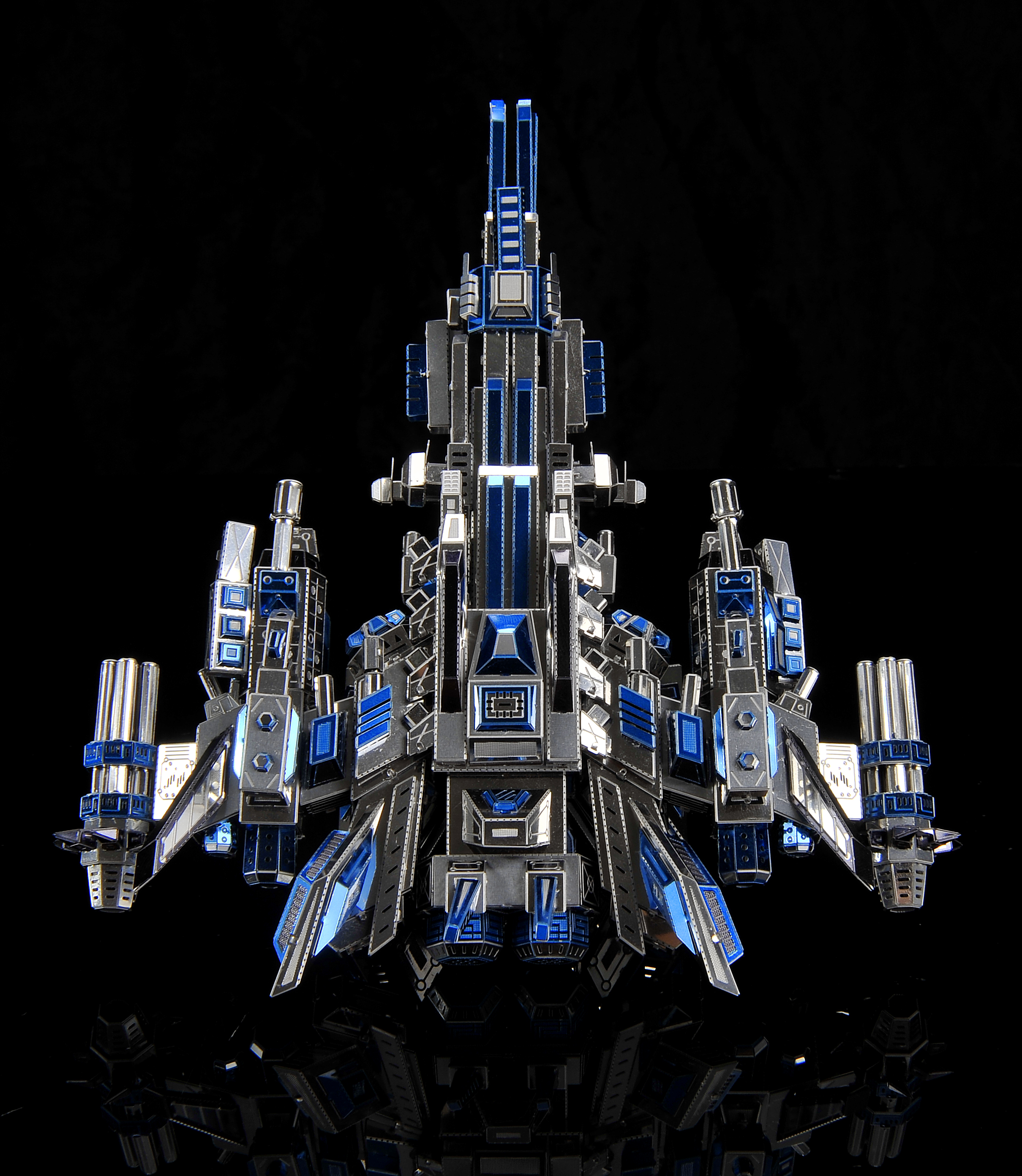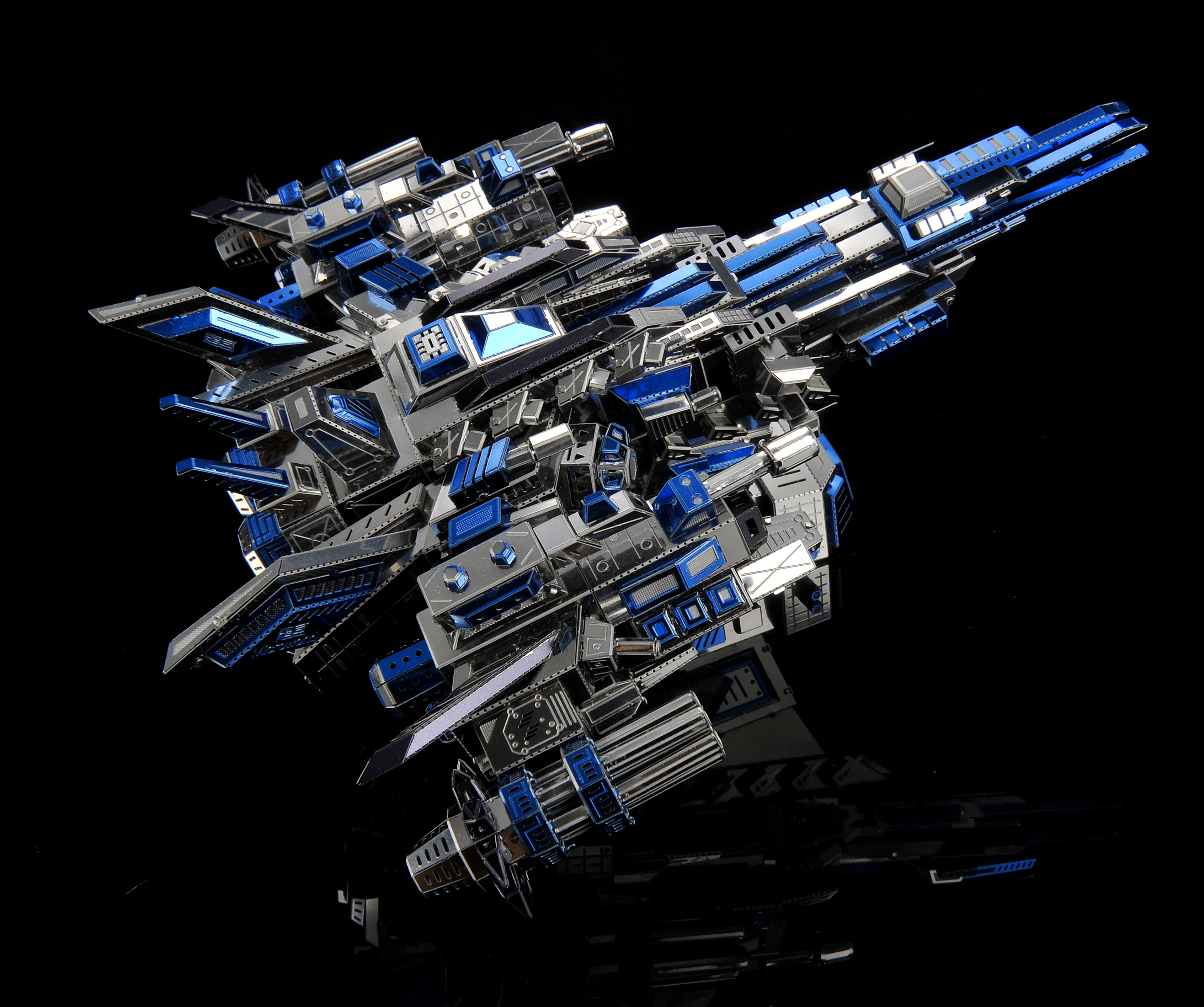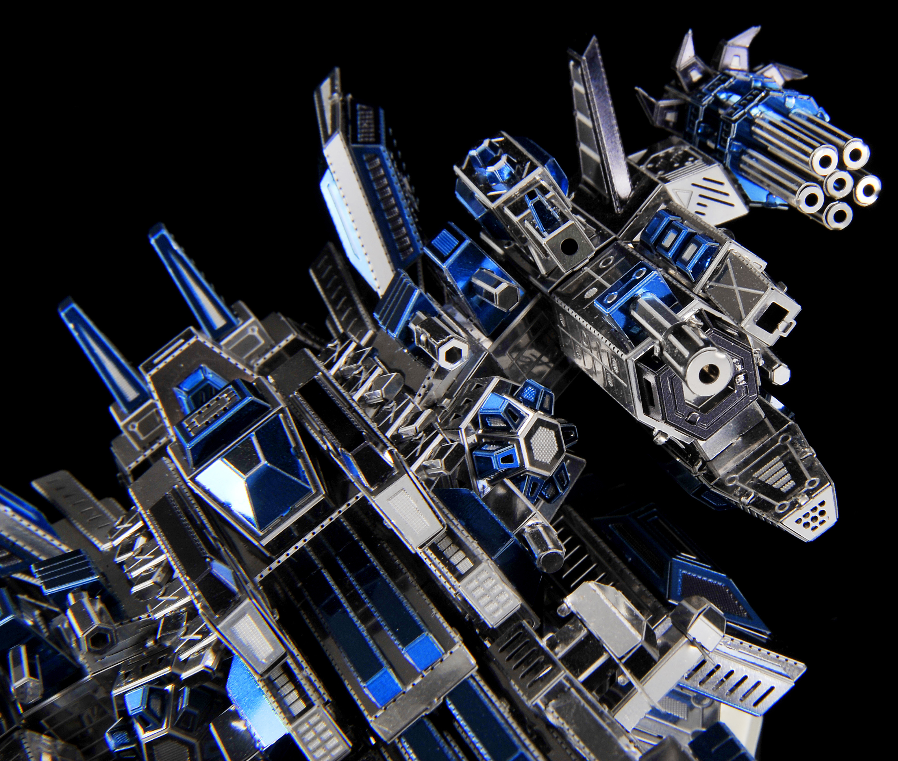 The warplane tilts upwards, with a gesture of rushing toward the blue sky, a number of blue illuminators throughout the body, igniting the night sky in the dark night sky, making the evil forces invisible!